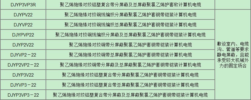 本產(chǎn)品適用于額定電壓500V及以下對于防干擾性要求較高的電子計(jì)算機(jī)和自動化連接用電纜。